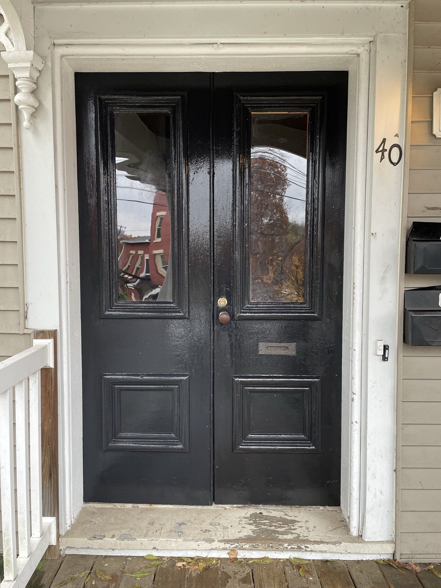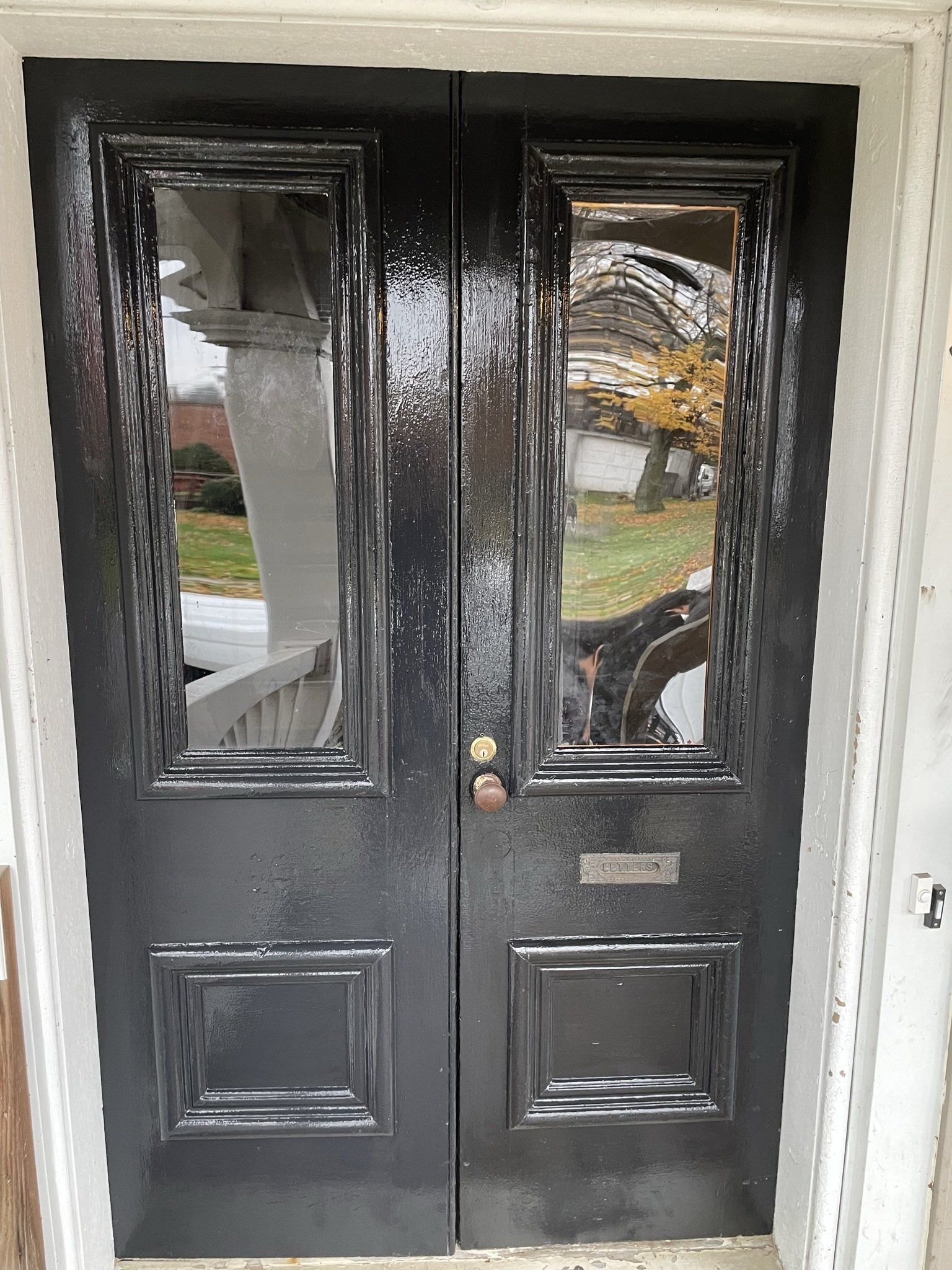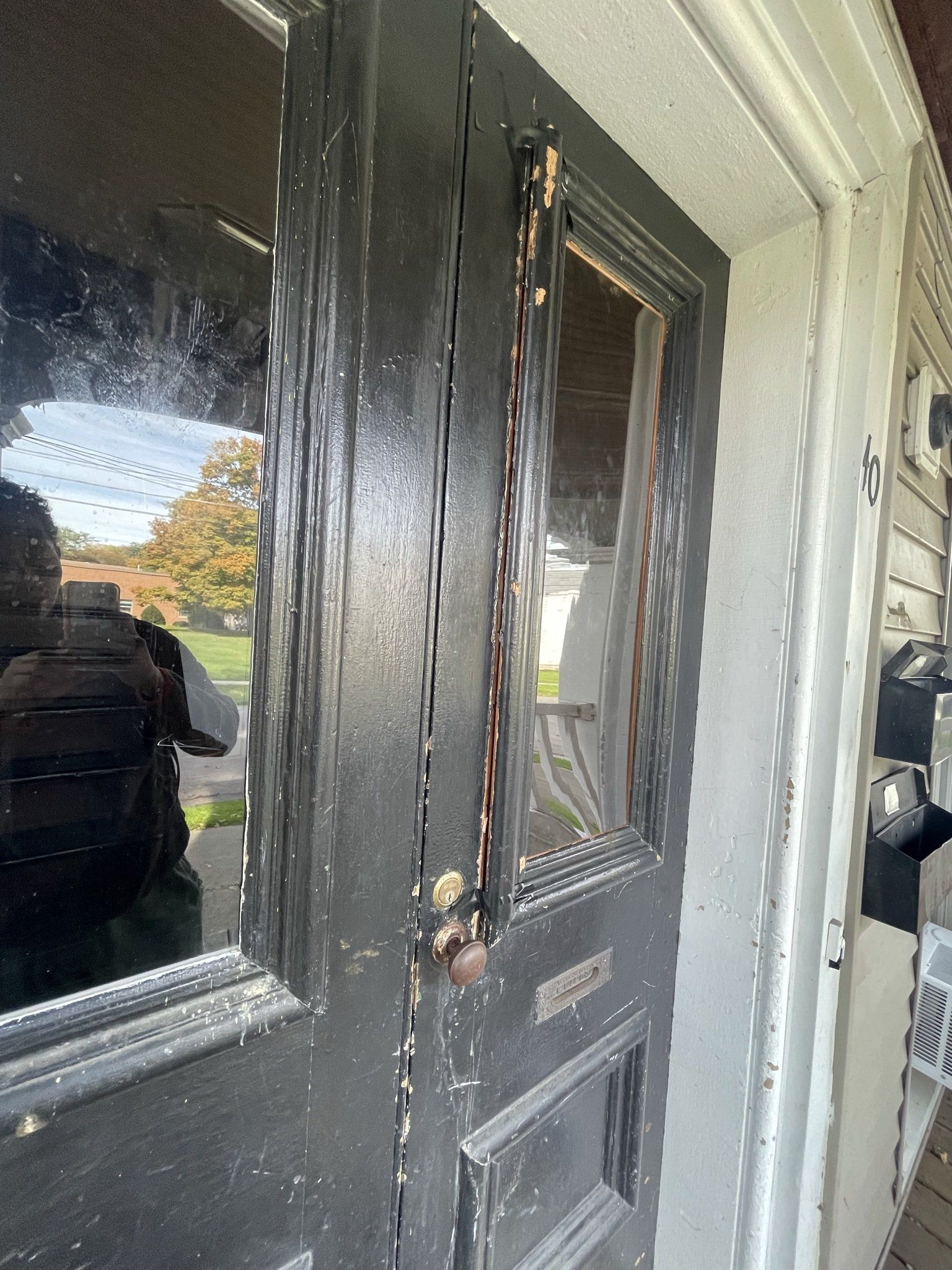 Outside door- trim was fixed along with plexiglass and painted.