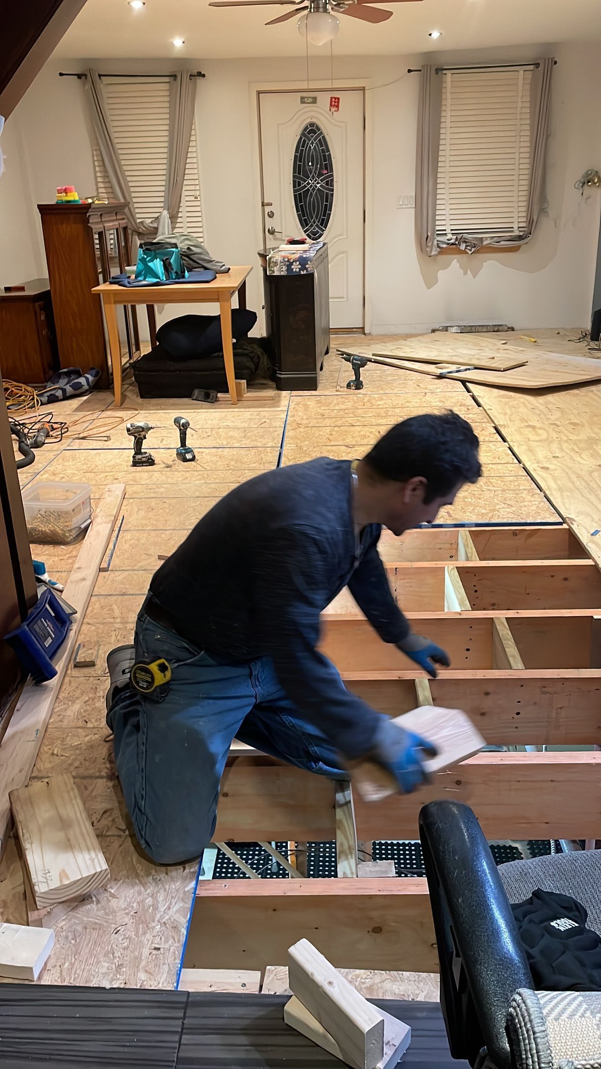 Total tear up of a creaky floor to a more solid and stable floor