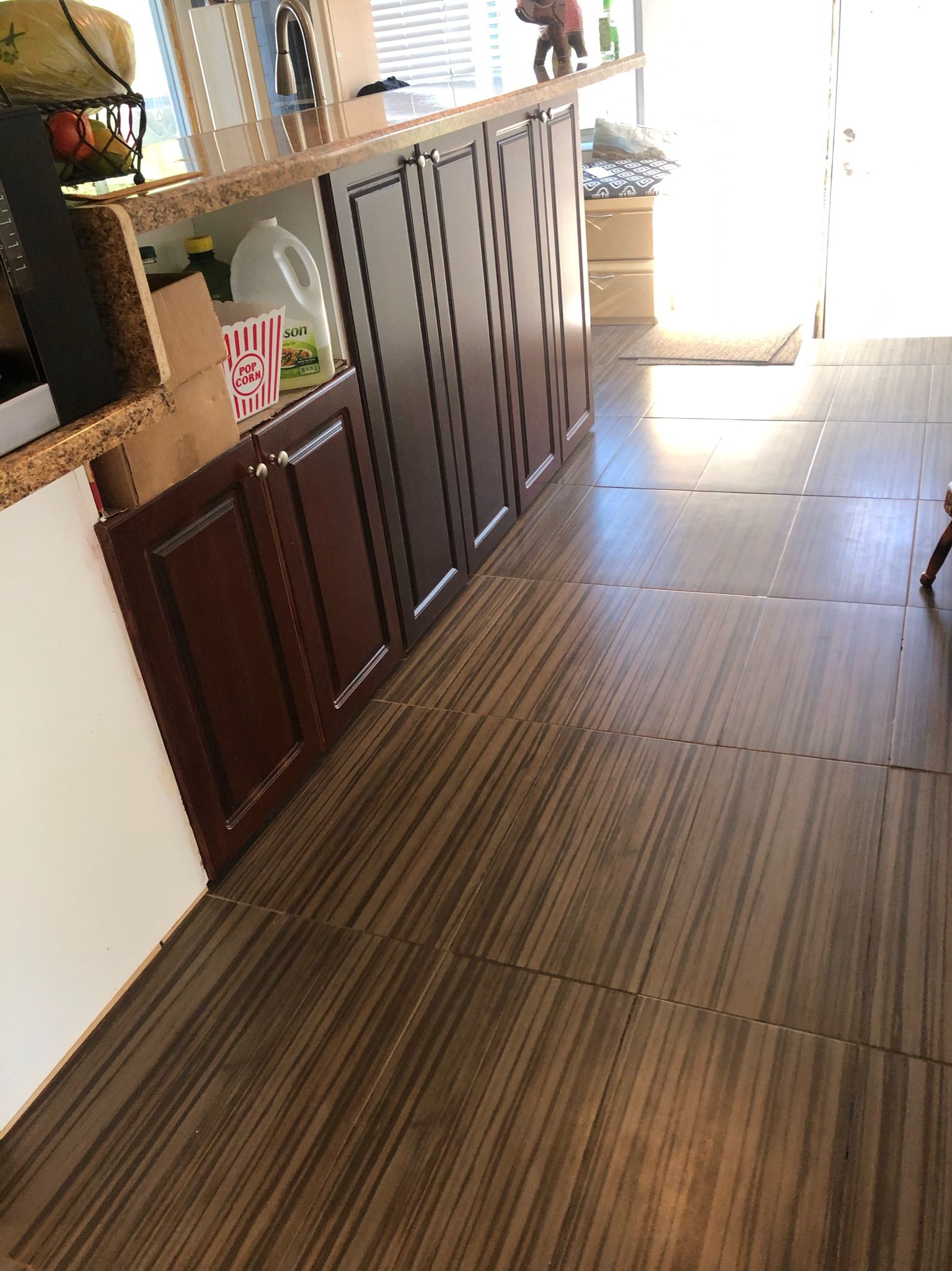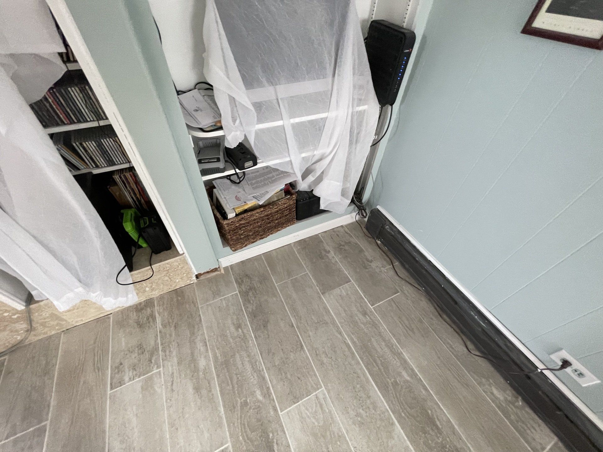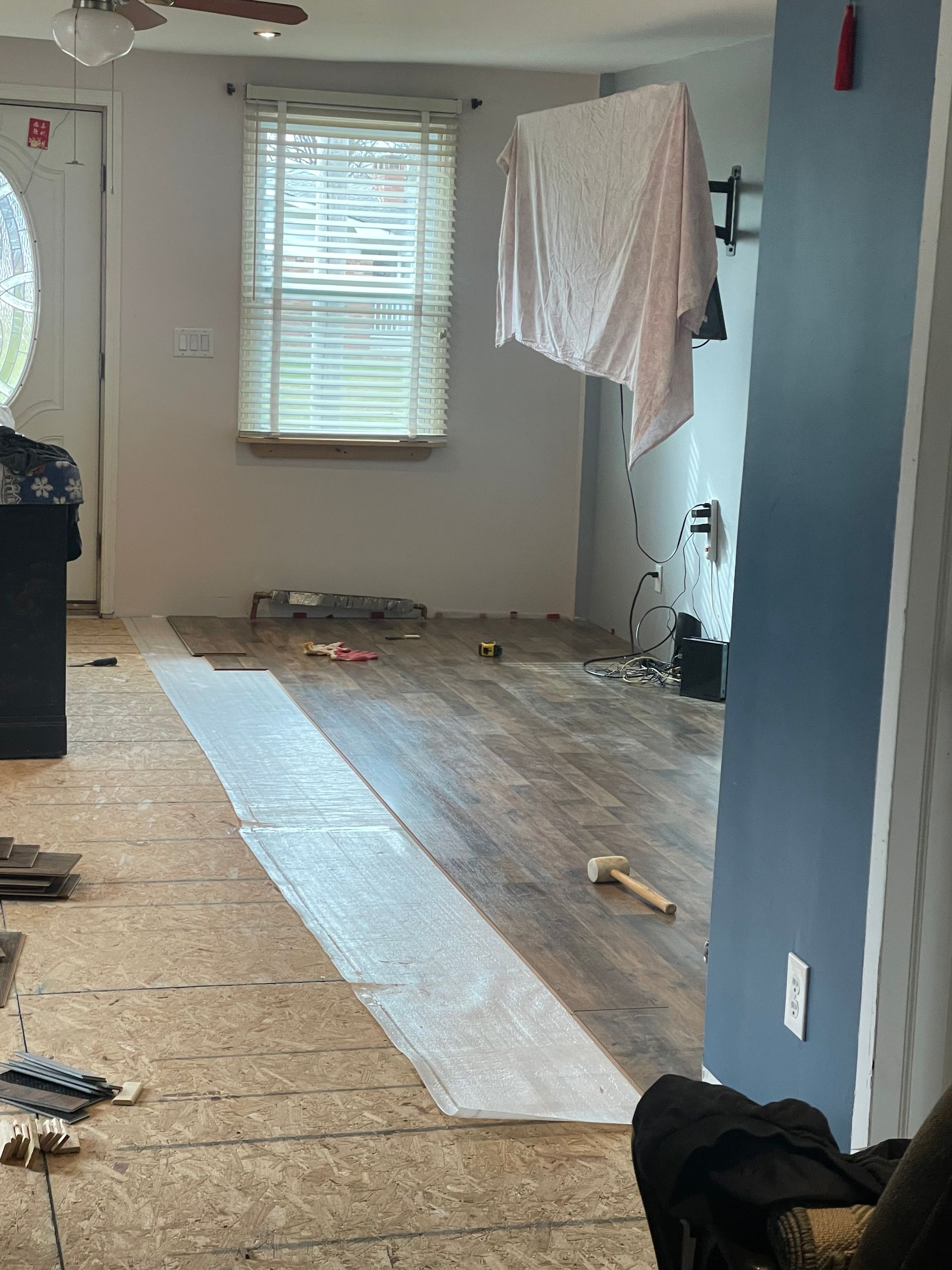 Refresh look- Fixing air bubbles by leveling floor and installing new anti-scratch flooring
