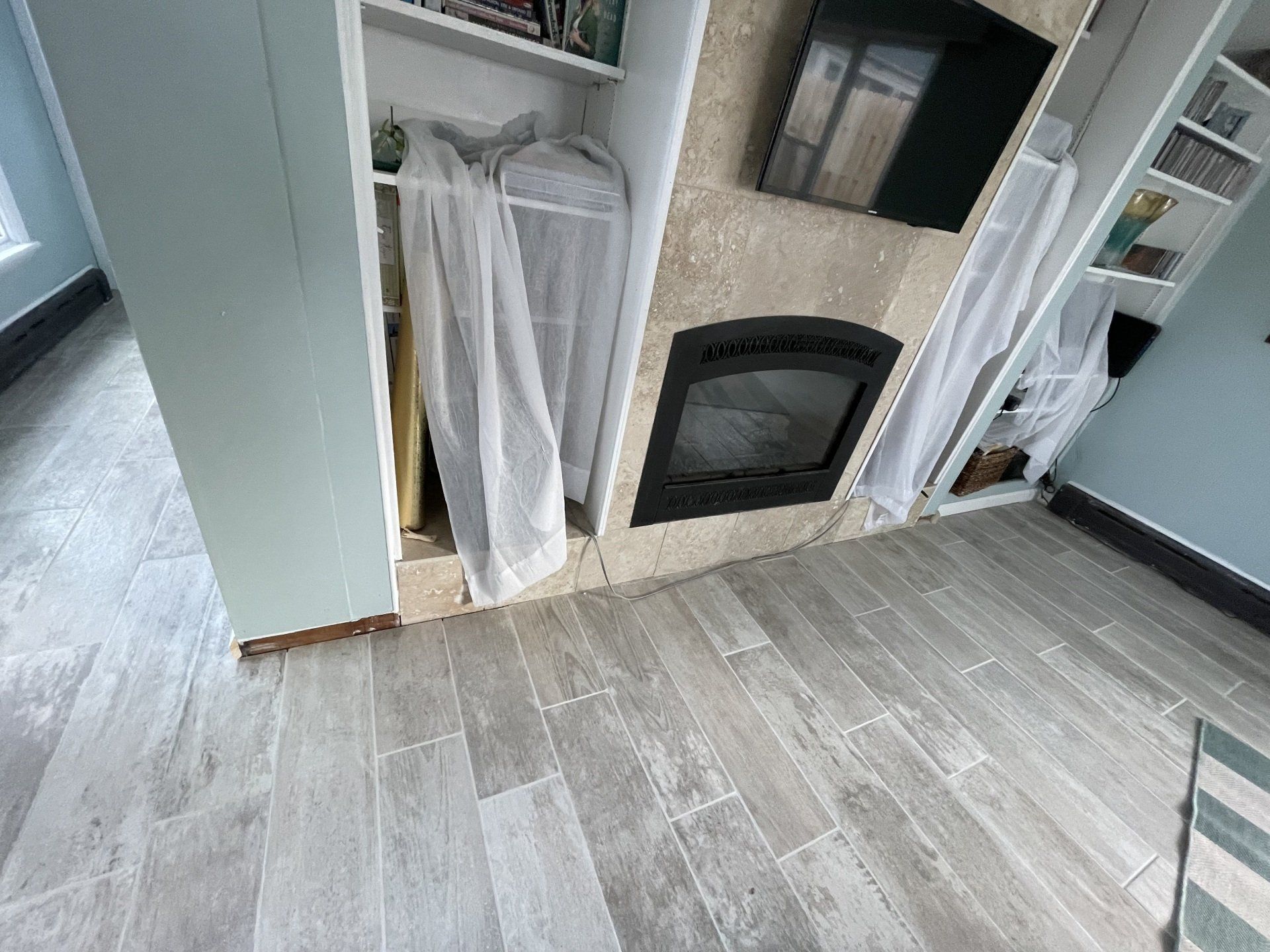 Trim work was done-trim was placed and made sure to fit with some floor fixes.