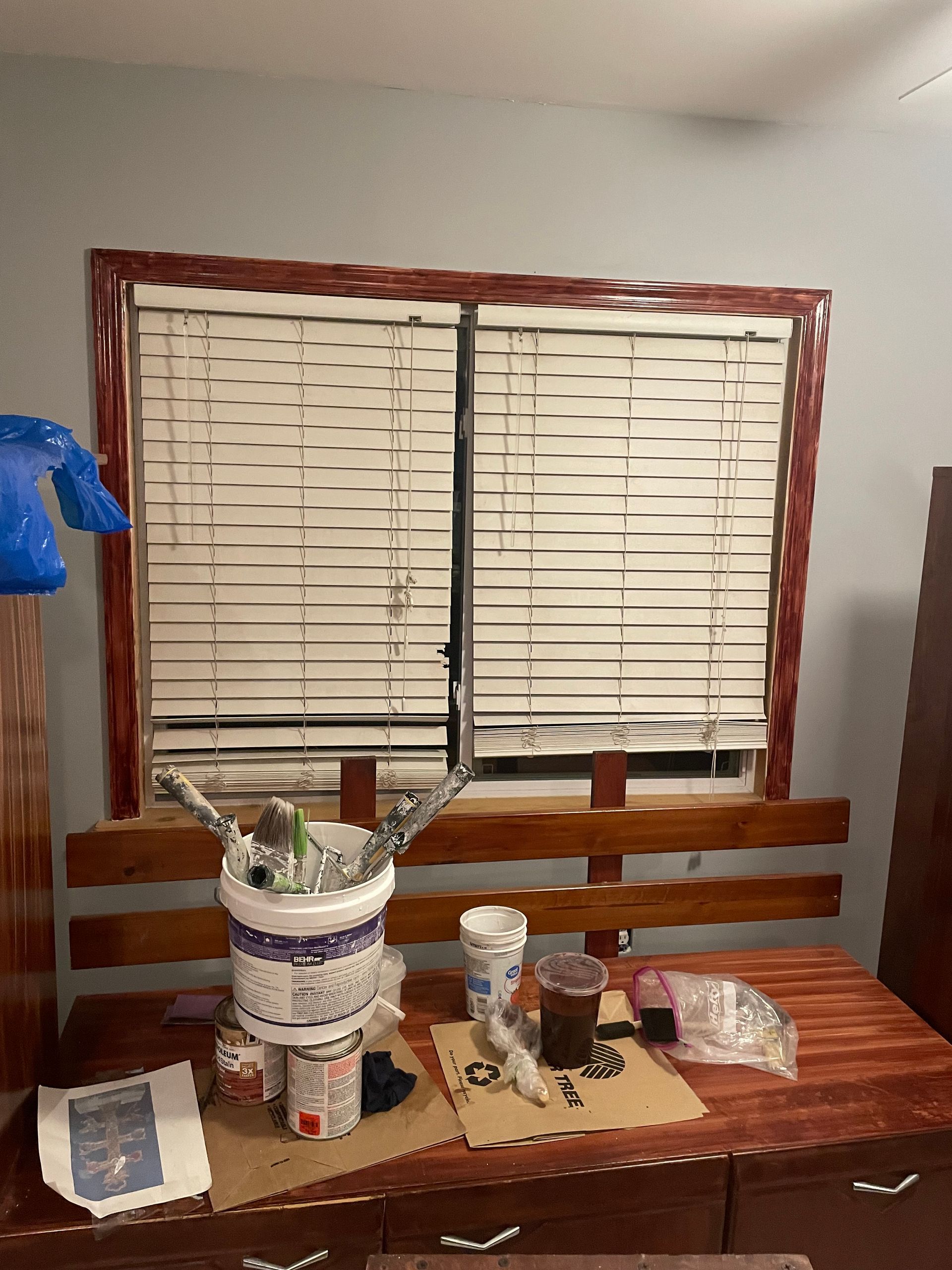 New stain-Old ugly one tone stain, converted to a beautiful sugar brown and white look.