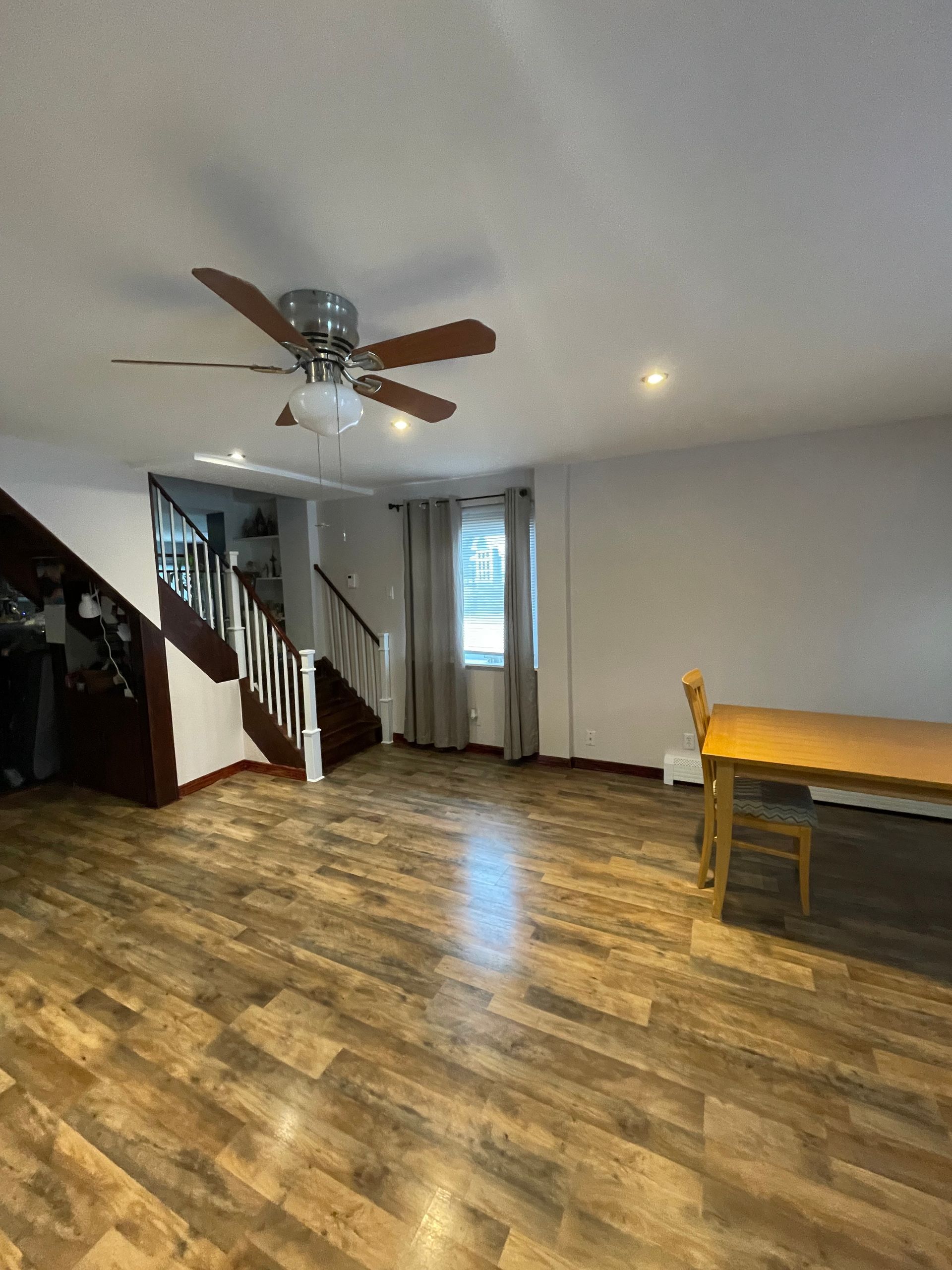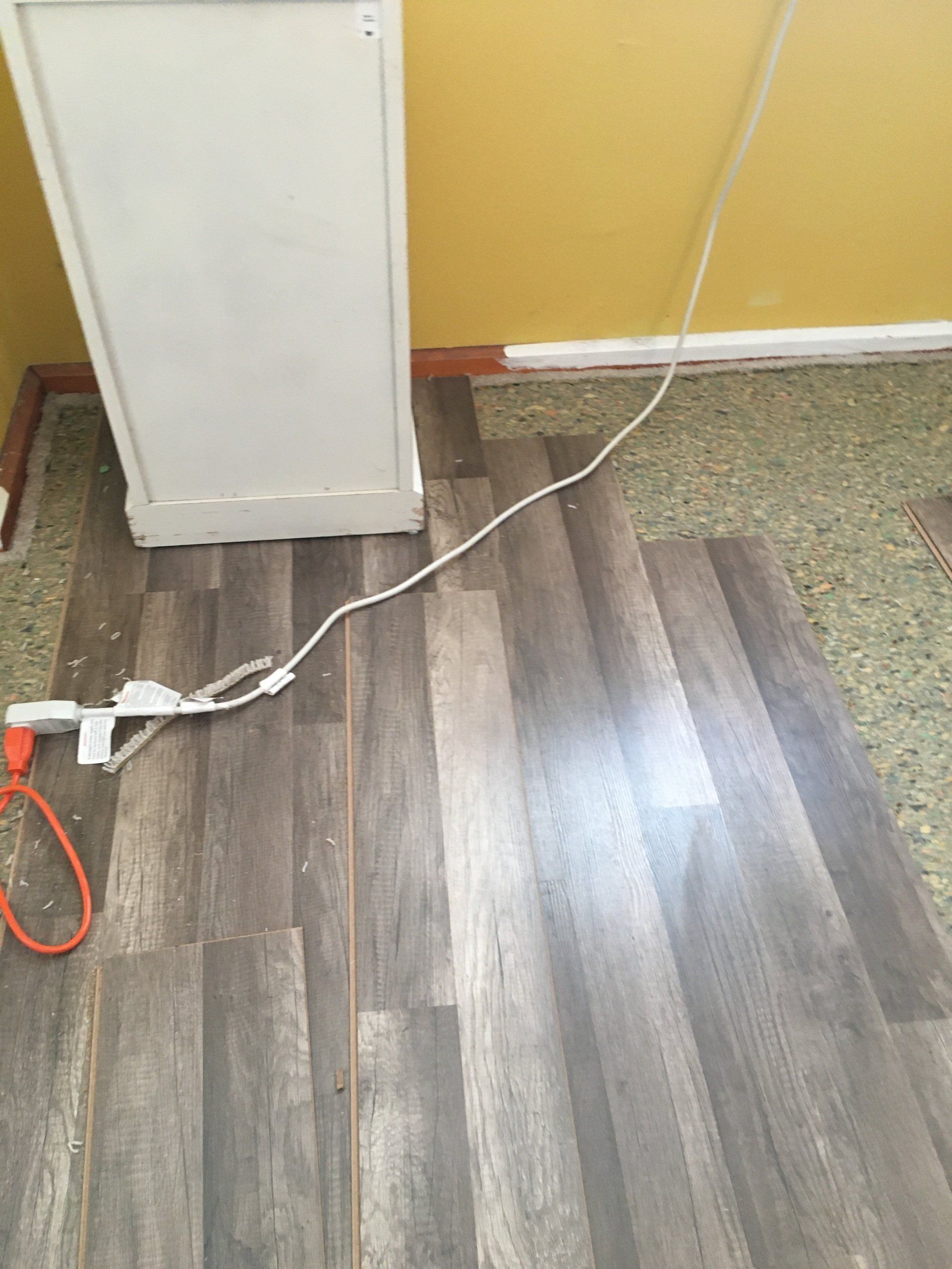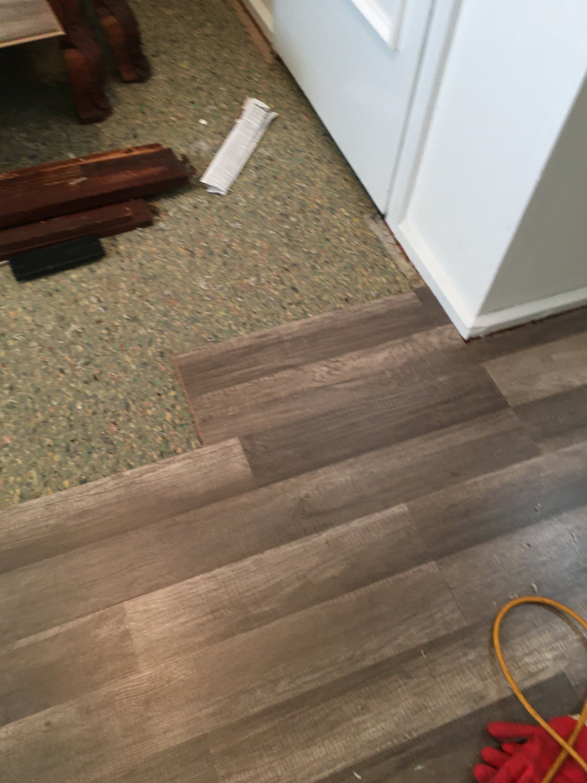 New Flooring-Old fluffy carpet turned to a beautiful anti-scratch laminate.