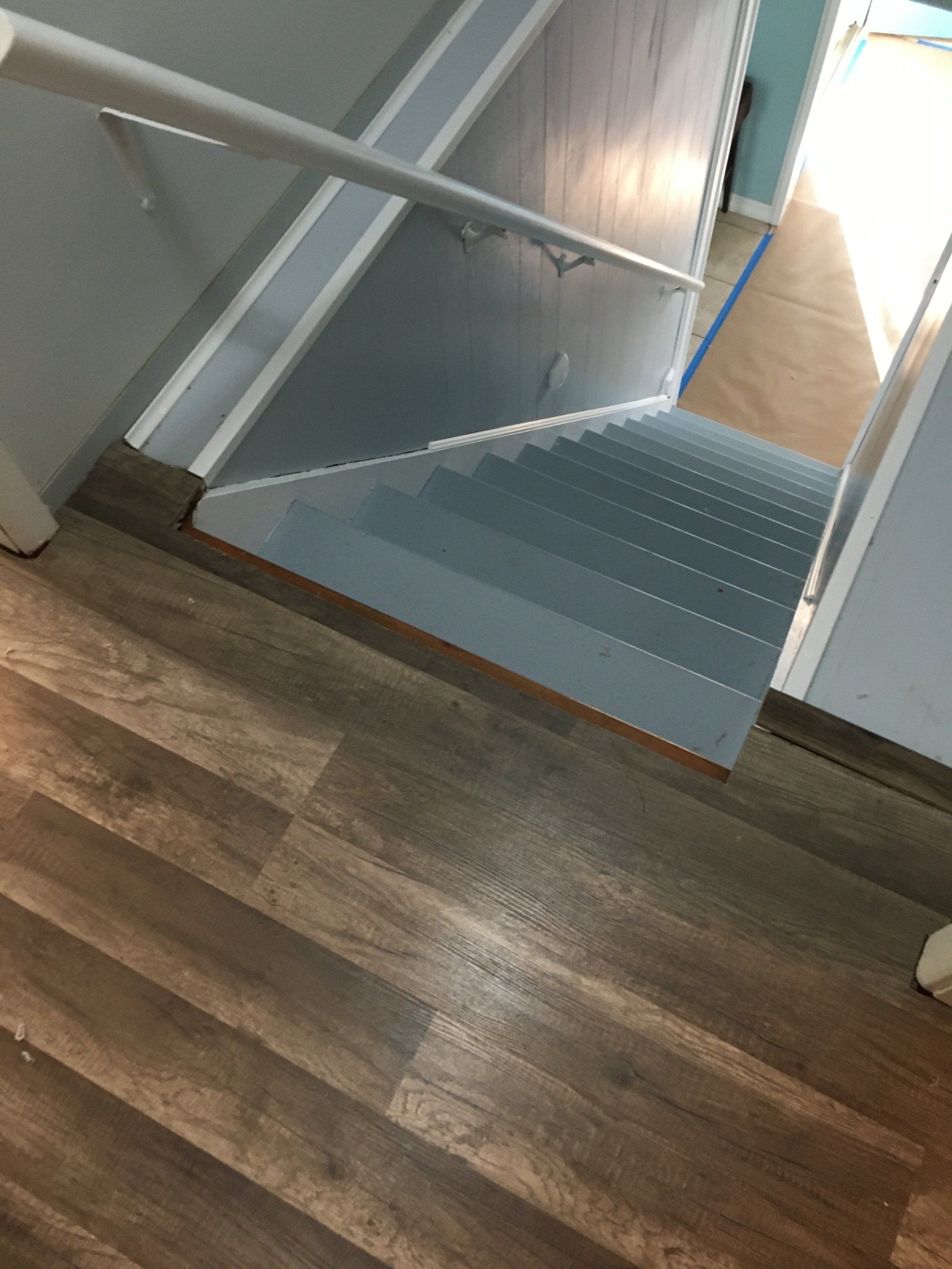 Restored stairs- From carpet stairs to sanded to painted with a beautiful color.